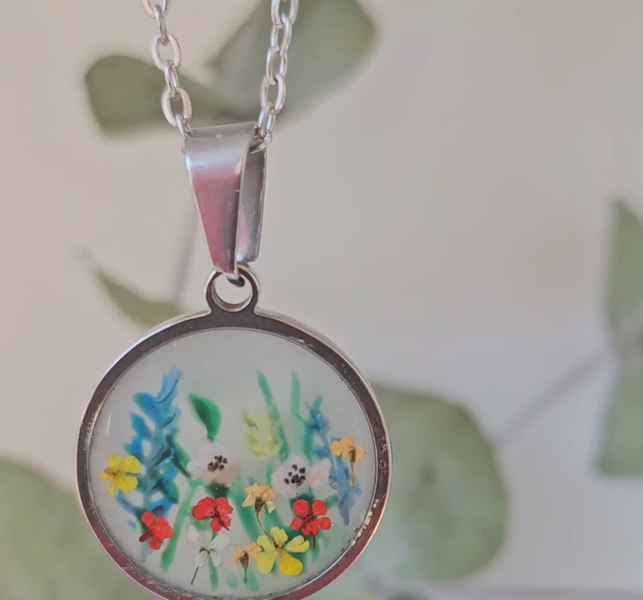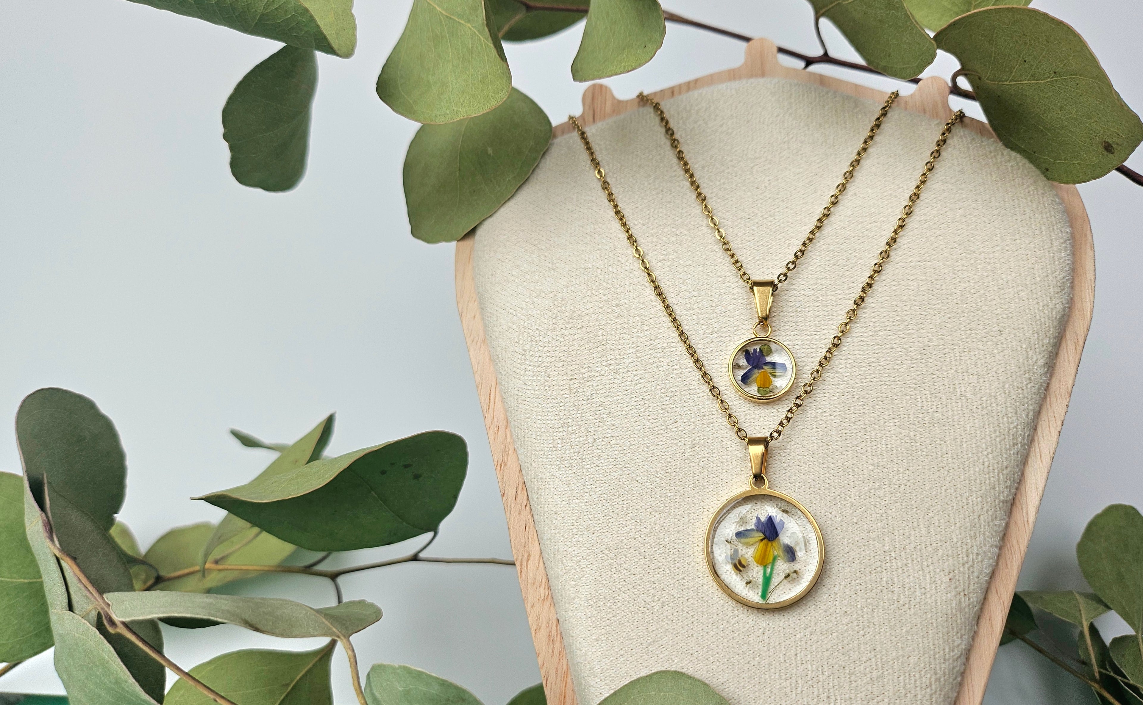 At Harebell and Dune, we capture nature and preserve it in resin. Each piece of jewellery is crafted from real dried flowers and hand-painted details, delicately arranged and set into timeless designs. Handmade in the beautiful Kent countryside, every piece offers a simple way to carry a little nature with you each day!